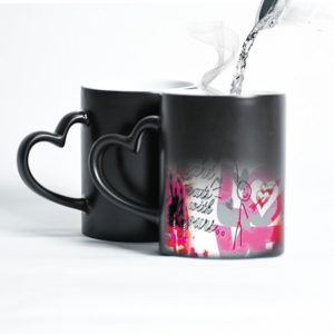 Angel Personalized Black Heart Handle Magic Mug, Best Couples Mug (Color Changing Magic Coffee Mug, 350ML)